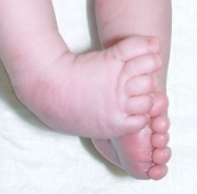 Sur cette image, on voit que la mobilisation passive du pied ne permet pas de le redresser