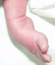 Aspect traditionnel de pied bot varus équin droit, dans une forme modérée